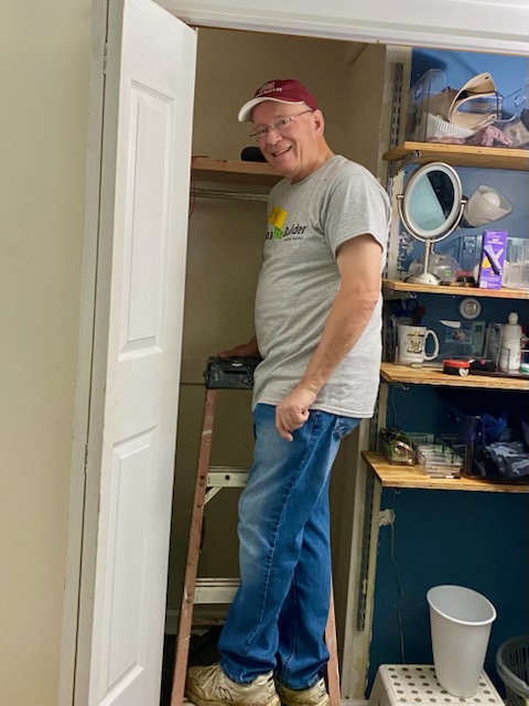 We repaired a house in Annandale owned by a retired mechanic/ small business owner. Volunteers painted a large shed, replaced wall mortar on the foundation, replaced window trim, installed a new toilet, and completed other repairs. The repair team, led by Ken Mittelholtz with help from John Clarke and Dave Wright, included volunteers from St. Barnabas’ Episcopal and Annandale United Methodist churches. Marlene Dakita of Lincolnia United Methodist Women led lunch preparation.